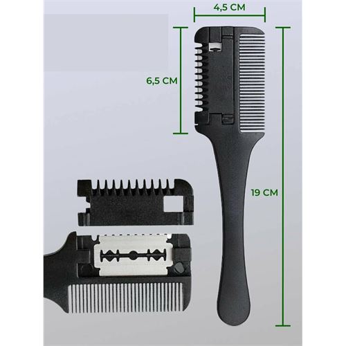 GÜVENLİ TÜY KESİCİ: Kısaltmak, şekillendirmek ve inceltmek için jiletli taraklar kullanılır. Güvenlik korumalı tıraş bıçağı cildini çizilmekten korur.