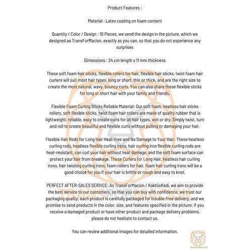 Bu yumuşak köpük saç çubukları, saçlar için esnek rulolar, esnek saç çubukları, bükümlü köpük saç bukle maşaları uzun veya kısa, ince veya kalın çoğu saç tipine uyacak ve en doğal, dalgalı, kabarık bukleleri oluşturmak için doğru boyuttadır. Uzun ya da kısa saçlara yönelik bu esnek çubukları aileniz ve arkadaşlarınızla da paylaşabilirsiniz.